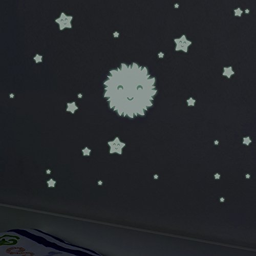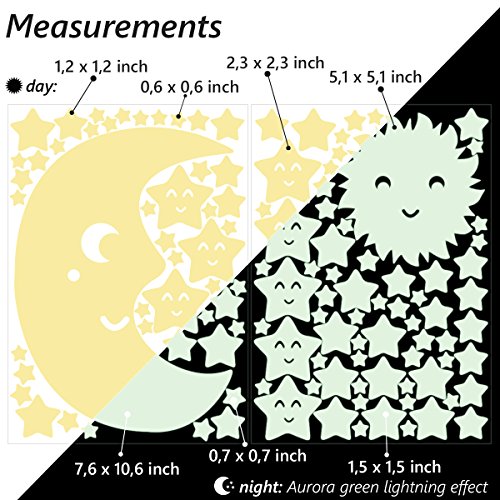 -. Title : Wandkings Glow-in-the-Dark Decals Sun, Moon & Stars XL Set 114 stickers on 2 US letter sheets (each 8.3 x 11.7 inch)