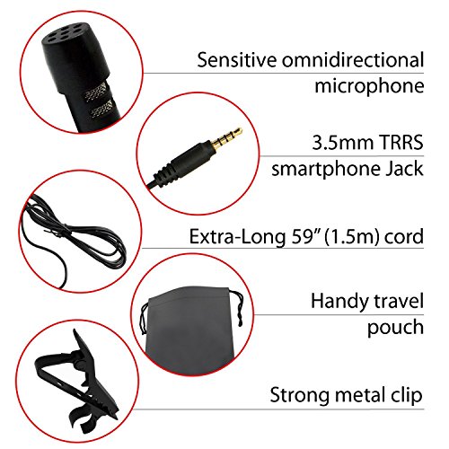 Dr. Queen Lavalier Microphone Clip-on Lapel Omnidirectional Condenser Mic for Apple iPhone iPad IPod Touch, Samsung Android and Windows Smartphones Film Interviews Voval Video Recording