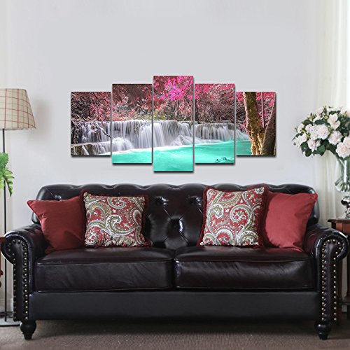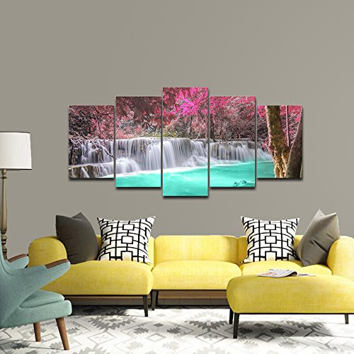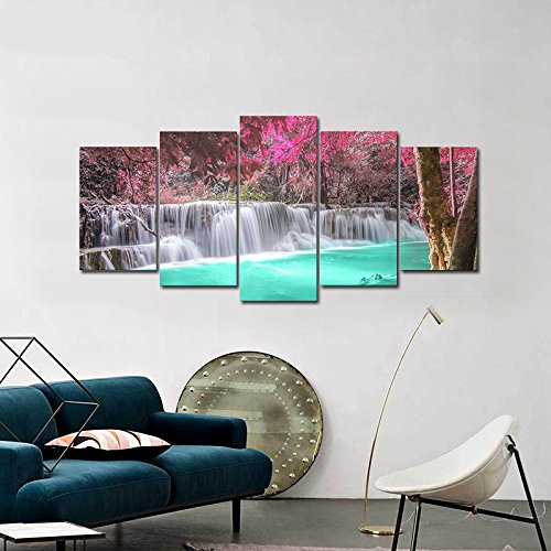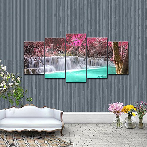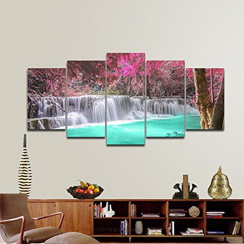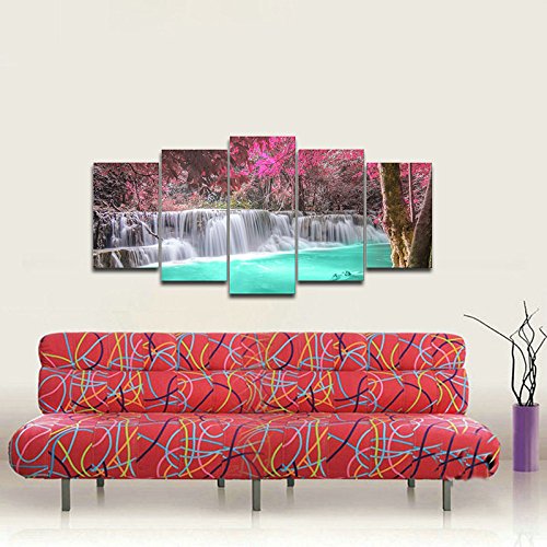 -. Title : Wieco Art Waterfall 5 Panels Canvas P.R.Int Stretched and Framed Canvas Wall Art for Wall Decoration and Home Decoration Modern Canvas Art P5RLA038