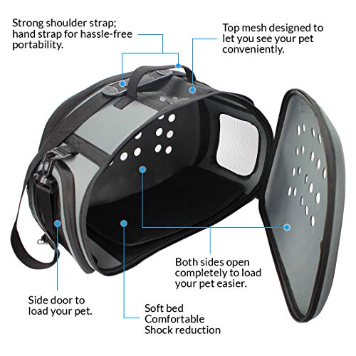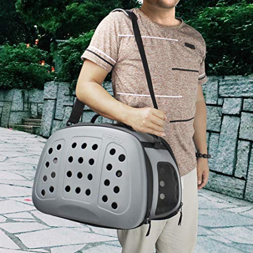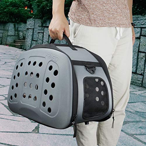 FRiEQのHard Cover Pet Carrierを使えば、快適さと安全性の間で選択する必要はありません。 20x12x12 "と測定されて、私達のキャリアは猫、小型犬、そして他のペットに最適です!強くて握りやすいハンドルと調節可能なショルダーストラップは街を横切ってまたは空港を通って運ぶのを簡単で快適にします。