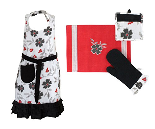 CORRELLE MATCHING KITCHEN SET - APRON, MITT, POTHOLDER, TOWEL