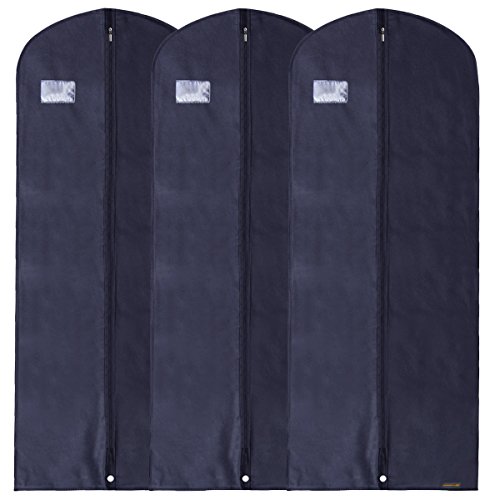 -. Binding : Kitchen -. Brand : HANGERWORLD -. Color : Navy Blue -. EAN : 5060225551850 -. Feature : Trusted British Brand. Pack of 3 protective zipped bags perfect for many styles and sizes of garment. / Size of bag is 24" x 60". Breathable 80 GSM Non Woven Recyclable Polypropylene. Clear document holder. / Secret Zipped Internal Pocket for valuables, lingerie or other outfit accessories. Acid Free (pH neutral) safe for use with all fabrics. / Shaped shoulders with reinforced hanger opening. Lower eyelet for carrying and storing folded in half. Clear PVC large document pocket. / Acid Free (pH neutral) safe for use with all fabrics. Ideal for storage, transport & protection of your precious garments. -. IsAutographed : 0 -. Label : HANGERWORLD -. Manufacturer : HANGERWORLD -. Model : Z-60-BR-NAVY_3 -. MPN : Z-60-BR-NAVY_3 -. NumberOfItems : 3 -. PackageQuantity : 1 -. PartNumber : Z-60-BR-NAVY_3 -. ProductGroup : Home -. ProductTypeName : HOME -. Publisher : HANGERWORLD -. Size : 3 -. Studio : HANGERWORLD -. Title : Hangerworld Pack of 3 Navy Breathable 60" Suit or Dress Garment Bag - Secret Internal Zipped Pocket