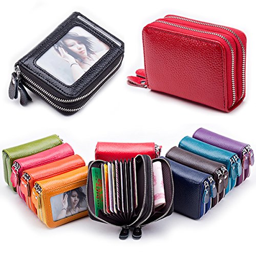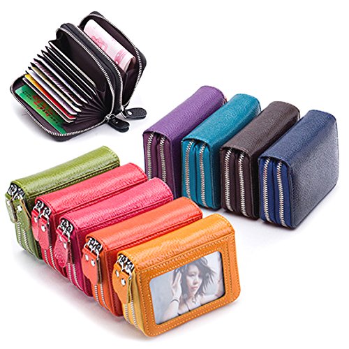 | Credit Card Wallet For Women Colorful Genuine Leather, Wallet Purse for Women Lady Girl Double ... |