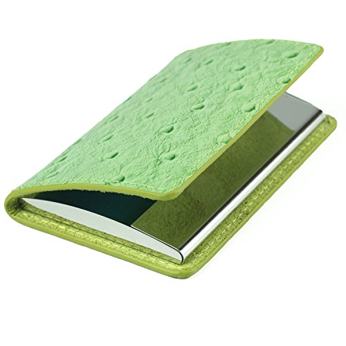 Fashion Stainless Steel Design with Ostrich Grain Leather Business Name Card Case Holder with M...