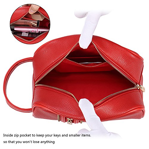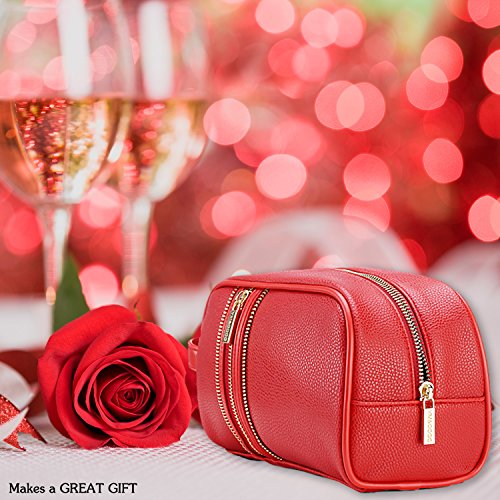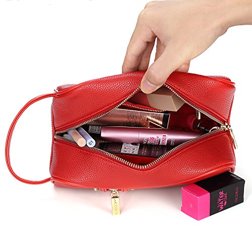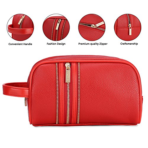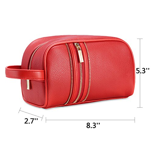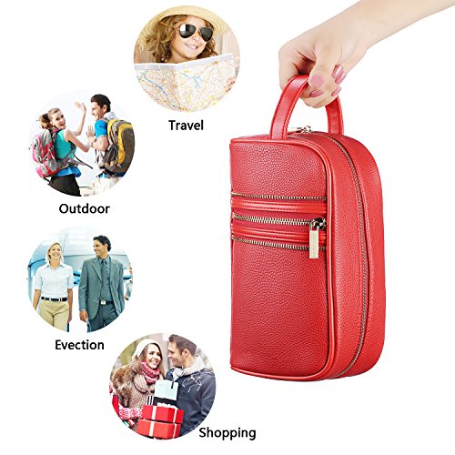 Toiletry Bag, Shaving Dopp Kit Leather Cosmetic Makeup Pouch Case for Women Girls Red