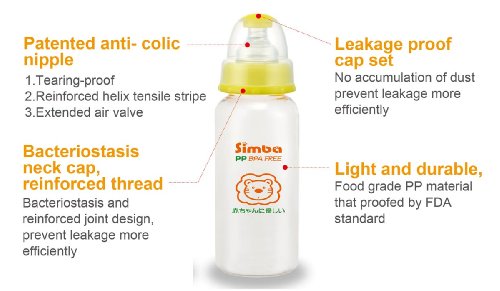 - Feature : Quality selected FDA standard food grade PP material. / BPA free / Come with anti-colic nipple to prevent colic, spit up, burping and gas / No leaking guarantee / Screw nipple design to mimic breastfeeding.
