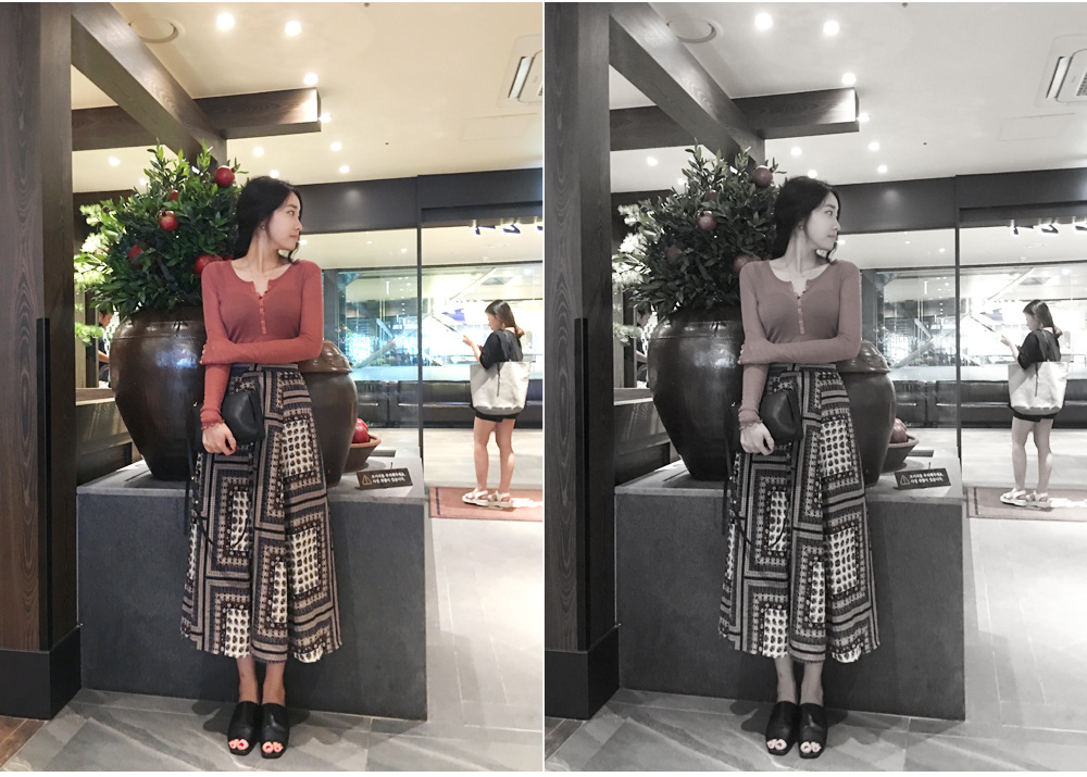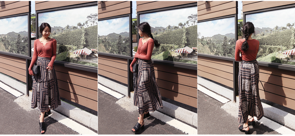 차르르한 소재감이 움직임을 더욱 매력적으로 보이게 해주고