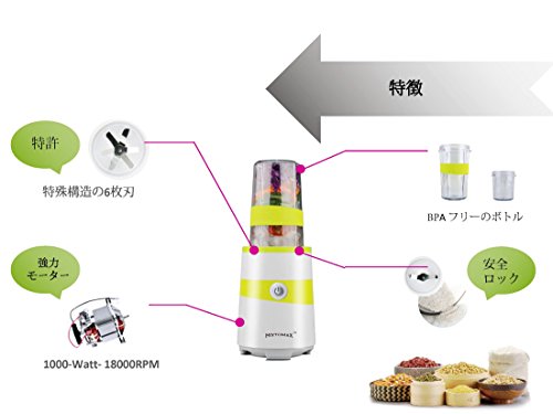 1대로 다역할:믹서 용기:1-2명 분에 정확히 좋은 분량의 보틀에,마셔 버린다크기의 신선 쥬스를 만들 수 있습니다.밀 용기:원두커피나 참깨의 분쇄는 물론,앵새우나 있어 오 등,자가제가 뿌려 만들기 등에도 쓸만한 옵션 파트입니다.