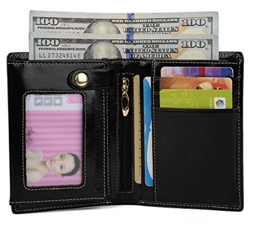 -. Binding : Apparel -. Brand : YALUXE -. Department : womens -. Feature : -Soft Genuine Leather with luxury waxed and oiled finish, naturally anti-scratch and durable. / Shiny gold-color hardware, heavy duty zipper and detailed contrast stitching brightens up the wallet. / Large capacity but compact due to its 16 card slots,including 3 clear plastic photo slot.2 long compartments for cash and an inside zipped pocket for coins. / This wallet comes in a cute gift box and it is already ready to be a great gift for your family and friends. / Dimensions: 4.72"L x 3.74"W x 1.1"H .The Weight is 0.22 pounds. -. ProductGroup : Apparel -. ProductTypeName : ACCESSORY -. Size : Small -. Title : YALUXE Women's Large Capacity Small Compact Genuine Leather Wallet with Zipper Pocket ID Window
