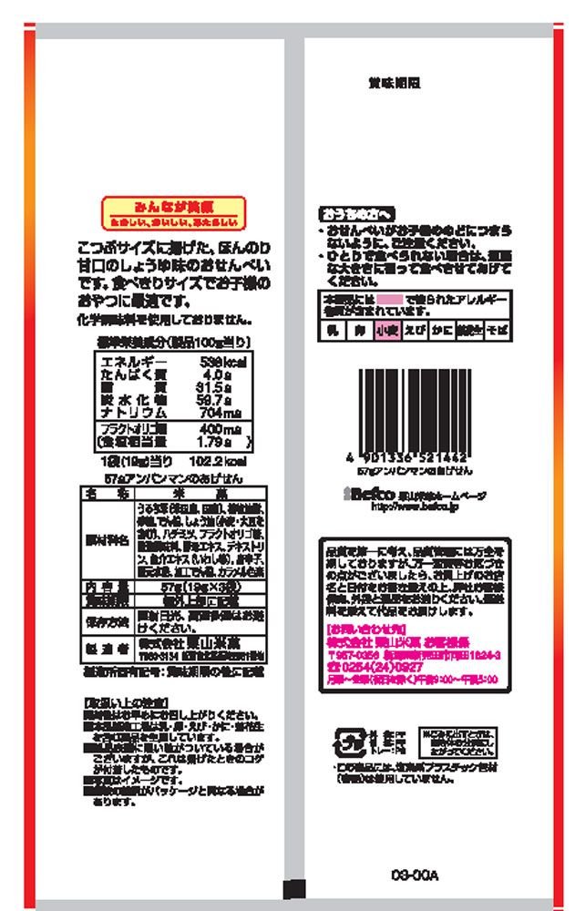 100 g / energy 538 kcal, protein 4.0 g, lipid 31.5 g, carbohydrate 59.7 g, sodium 704 mg, fructooligosaccharide 400 mg, salt equivalent weight 1.79 g