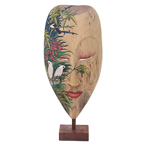 NOVICA Decorative Wood Leaf And Tree Mask, Multicolor 'Forest Beauty'