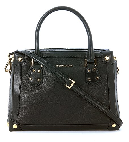 Designed with the charming good looks of a vintage train case, MICHAEL Michael Kors' sturdy leather Tamryn satchel is outfitted with modern amenities like an inner slip pocket for your cellphone and convenient key clip. Double handles with 4" drop; adjustable shoulder strap with 21"-23" drop Zipper closure Exterior features gold-tone hardware and 1 back slip pocket Interior features 1 zip pocket, 4 utility pockets and key clip 11" W x 8-1/2" H x 5" D Soft Venus leather; lining: polyesterFeature