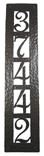 -. Feature : 5 number custom hammered iron address plaque. You choose your numbers / Old world hammered look and feel. / Made in USA.