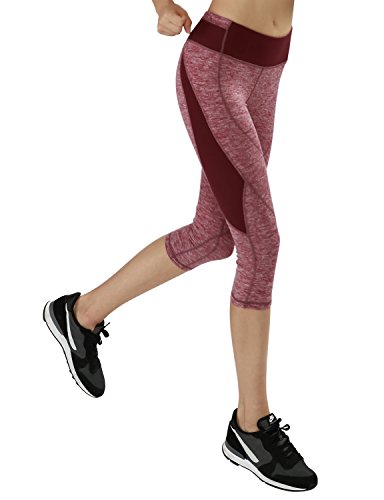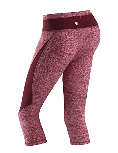 -. Title : YogaReflex Women's Fold Over Yoga CaP.R.I Pants ? Fitness Workout CaP.R.Is , Redheather , Large
