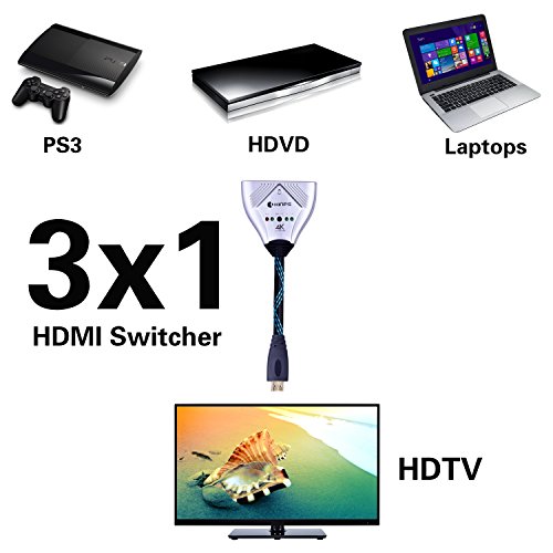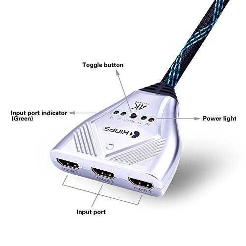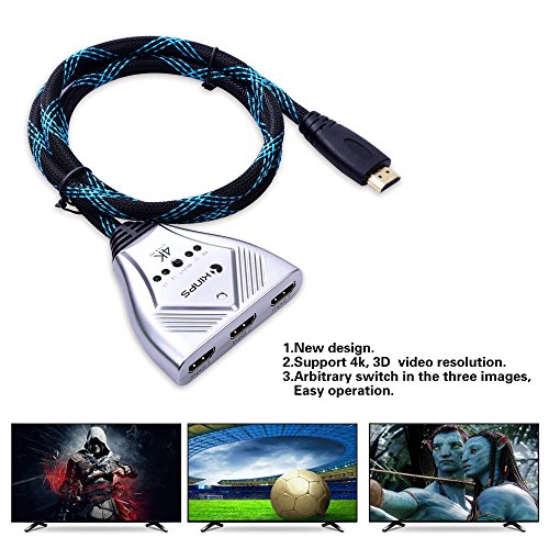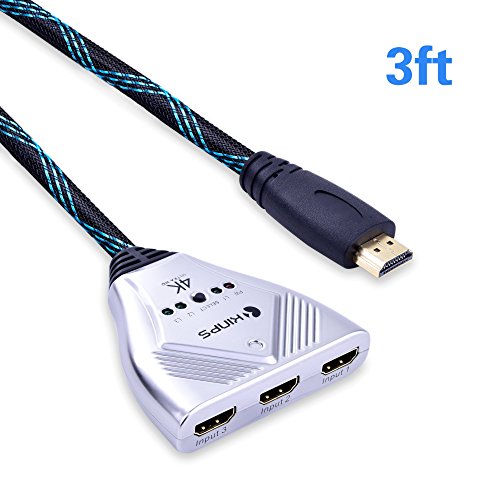 HDMI Cable, Kinps 3 Ports HDMI Switch HDMI Selector Switch Box High Speed HDMI Switcher Supports 4k, 1080P, 3D, HD Video Audio for Fire TV, Fire Stick, Cable Box, Roku, Xbox One, PS4, Blue-ray Player