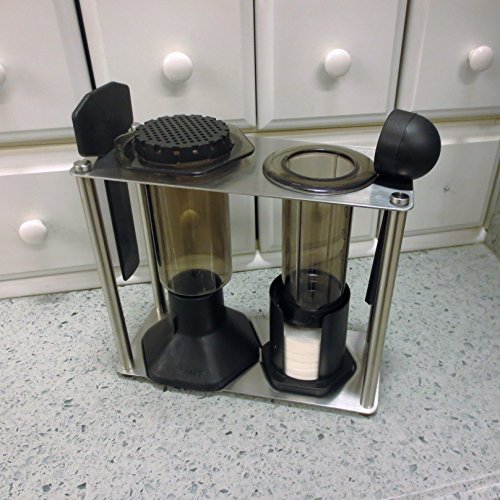 The Blue Horse AeroPress Caddy gives you a space to keep your AeroPress organized and clean as it dries between uses. It is made from solid, brushed stainless steel with non slip rubber feet to keep it in place and protect your counter top. Stop throwing the pieces in a drawer or laying them out on a towel to dry. Organize and free up your counter space with the Blue Horse AeroPress Caddy!Feature
