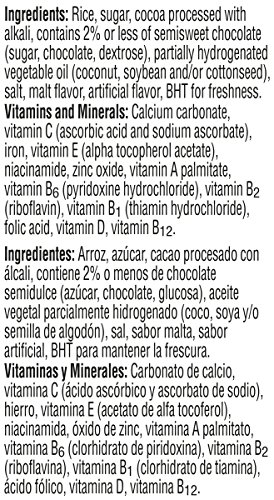 -. Feature : Chocolately, sweetened rice cereal; Enriched with 13 essential vitamins and minerals; Low fat, zero trans fat; Zero cholesterol