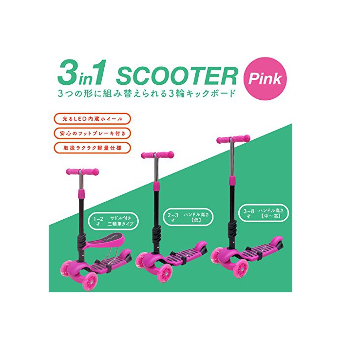 (노 브랜드)무상표 상품 킥 보드 어린이용 3 돌아가 3in1 saddle 부착 핑크 1세~ 킥 스케이터 키즈 유아 3 돌아가 차삼륜차 △_85308