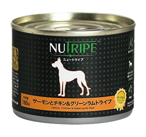 原材料:サーモンスープ、サーモン38.75%、鶏肉33.33%、グリーンラムトライプ24.27%、カラギーナン、ピロリン酸四ナトリウム、塩化カリウム、カシアガム、グアーガム、緑イ貝エキス、ビタミン ミネラル類 塩化コリン、鉄アミノ酸キレート、亜鉛アミノ酸酸キレート、ナイアシン、ビタミンE、セレン酵母、パントテン酸カルシウム、マンガンアミノ酸キレート、銅アミノ酸キレート、チアミン塩酸塩、リボフラビン、ピリドキシン塩酸塩、ビタミンA、ビオチン、ビタミンB12、葉酸、ヨウ素酸カルシウム、ビタミンD3