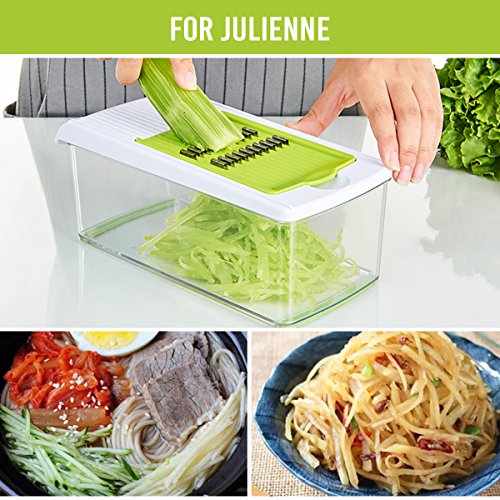 Studio : Osxuefuw Publisher : Osxuefuw Product Description Specifications: Material:PP PS ABS Stainless Steel Color: Green Product Size: 9*5.3*4.2 inches Package Weight: 1.16 pounds Features: ★7 interchangeable stainless steel blades, fits your different need of proceeding the veggies, fruit, cheese or any other. √Including: 2.5 mm slicer, 3.5mm slicer, Grater, Fine Grater, Sticks Cut, Pieces-Cut(Small) ,Pieces - Cut(Middle) Package included √2 *Main body of Mandoline Slicer √1 *Container with Crisper √7 *interchangeable stainless steel blades. √1 *Ceramic Blade Peeler Bonus √1 *Finger protector √1 *Cleaning Tooltiny cleaning tool is behind the container lid pusher Note: √The mandoline slicer blades are very sharp.Please be careful when you using it! It is advised to use with gloves. √Clean the mandoline slicer immediately after use to prevent food from drying on the parts.Do not use more than 60 degrees of water cleaning. Godmorn WARRANTY Should there were any damage caused during the shipping. Please feel free to contact us to get a replacement. 100% SATISFACTION MONEY BACK GUARANTEE 0