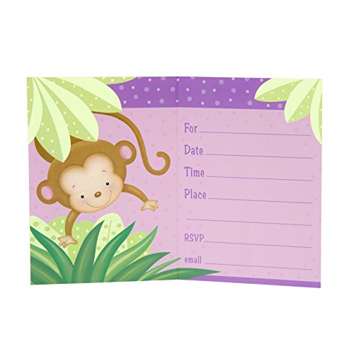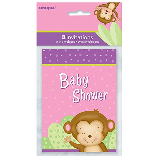 Girl Monkey Baby Shower Invitations, 8ct