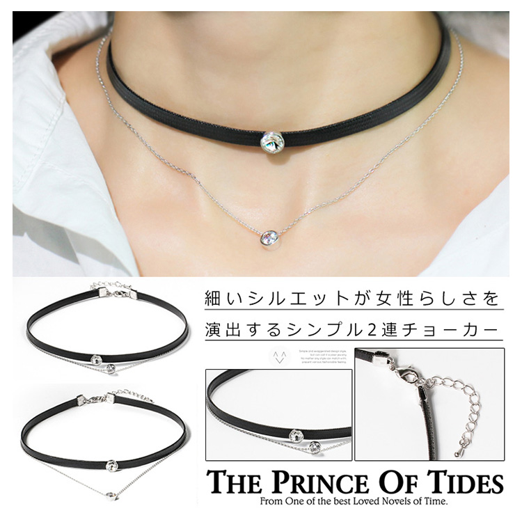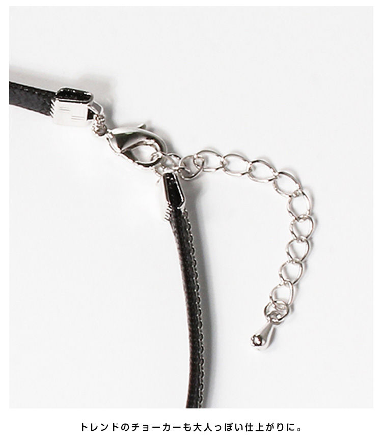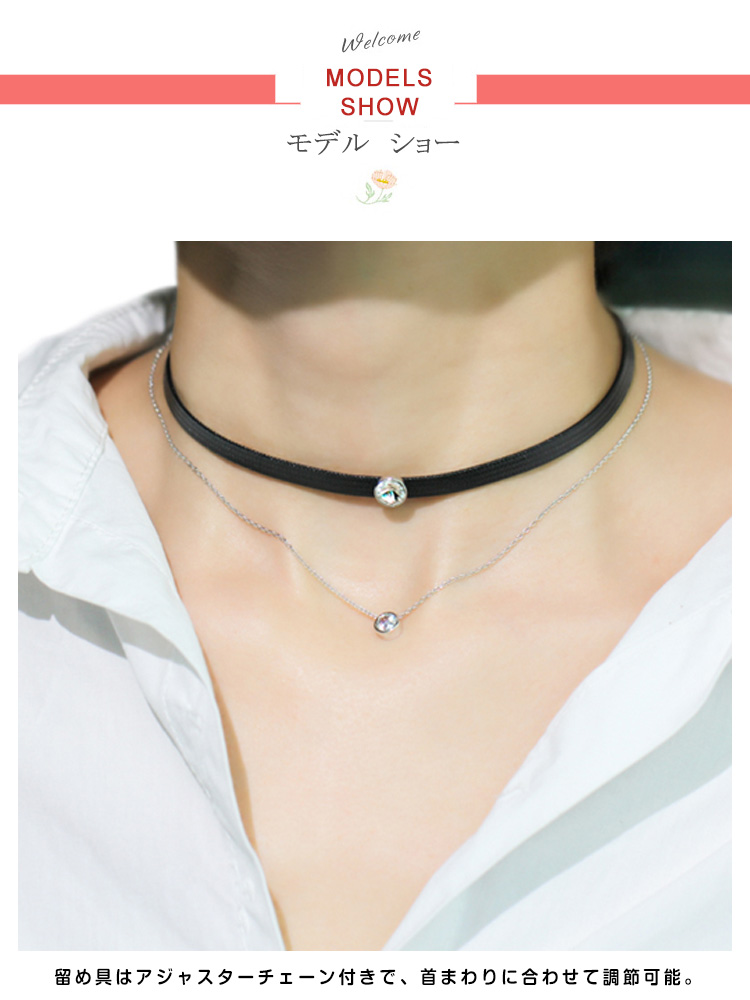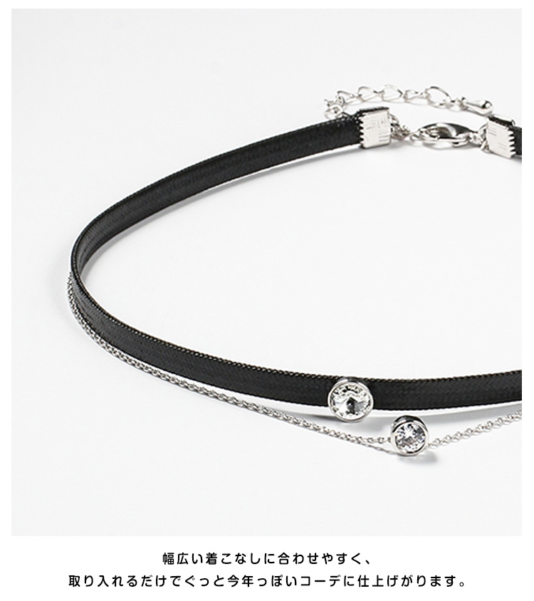 | 細いシルエットが女性らしさを演出するシンプル2連チョーカー。留め具はアジャスターチェーン付きで、首まわりに合わせて調節可能。トレンドのチョーカーは首を細く華奢な印象に仕上げてくれる優秀アイテム。 | |