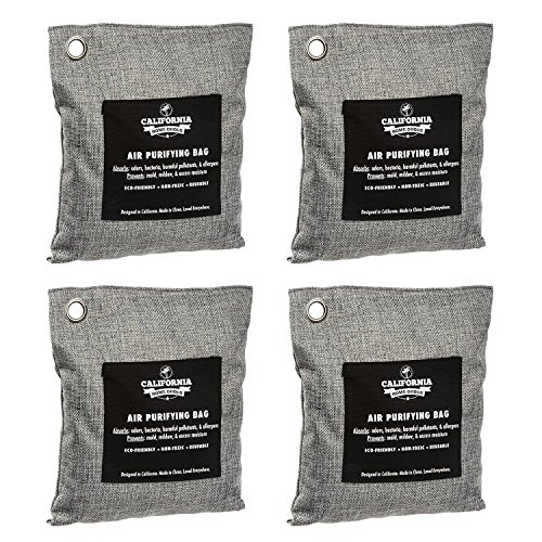 4 Pack - 200g Activated Bamboo Deodorizer Natural, Air Purifying Bags, Dehumidifier, Odor Absorber, Odor Neutralizer for Home, Shoes, Car, Charcoal Colored, by California Home Goods