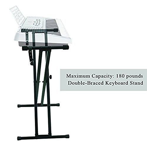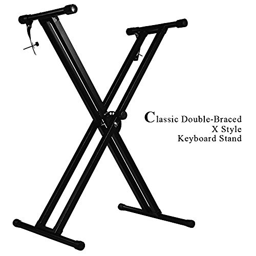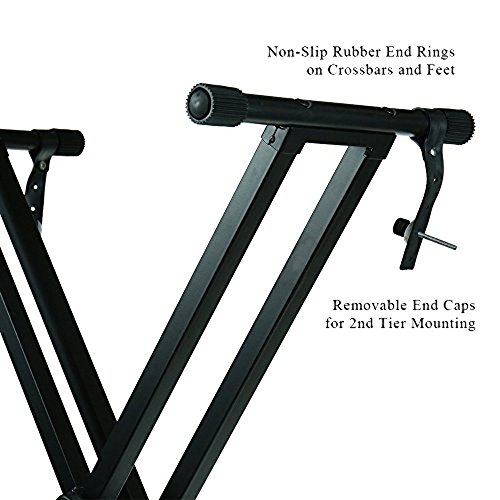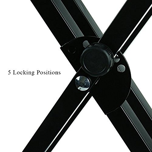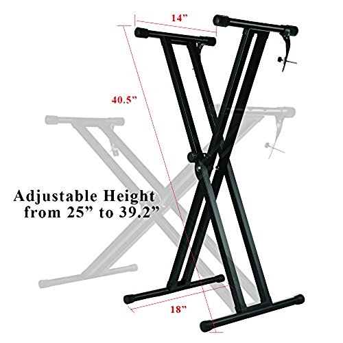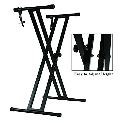 -. Brand : PARTYSAVING -. Feature : Arm sleeves can be positioned to fit virtually any keyboard width / Material: Power coated Iron with non-slip rubber end caps / Adjustable height: 25" - 39.2" / Weight Capacity: 180 pound / Assembly Required: All necessary tool is included. -. PackageQuantity : 1 -. ProductGroup : Musical Instruments -. ProductTypeName : INSTRUMENT_PARTS_AND_ACCESSORIES -. Title : Pro Series Adjustable Double-Braced X Style Piano Keyboard Heavy Duty Premium Stand - Black APL1301