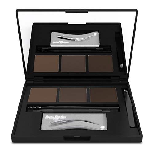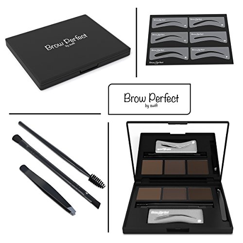 -. Title : Makeup kit for perfect eyebrows - Includes 6 Eyebrow Stencils, 3 Eyebrow Powders, 3 Eyebrow Brushes, Tweezers and a compact mirrored case