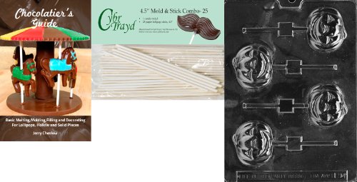 Cybrtrayd 'Smiling Pumpkin Lolly' Halloween Chocolate Candy Mold with 25 4.5-Inch Lollipop Sticks and Chocolatier's Guide