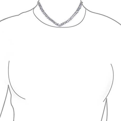 From your wedding day to a night out, this sparkling V shaped tennis necklace is a great way to add some glam to your outfit. With clear CZ, held together by rhodium plating, this 16in, sophisticated necklace has a fold over clasp and sophisticated style.