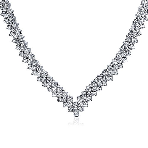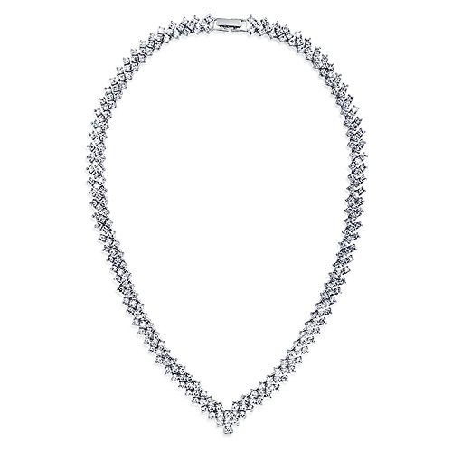 The look and feel of our V shaped bridal tennis necklace captures the essence of just what you always dreamed of your wedding to be like. Romantic. Enchanting. Refined. Sophisticated. Our sensational Cubic Zirconia tennis necklace is a perfect example of a stunning accessory to wear on your special day. It hangs at a 15 inch length and the versatile nature of the piece will ensure that it will look lovely with almost any style or design of wedding gown. This bridal tennis necklace is a perfect choice for everyone in your wedding party, including the mother of the bride. Of course, if you know and love someone special who celebrates an April birthday and loves gorgeous jewelry, look no further for that amazing gift.Feature