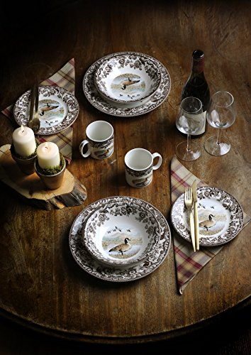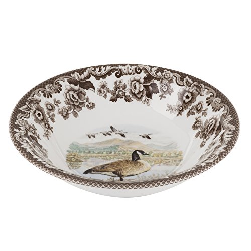 Spode woodland pattern features fine studies of British and North American game animals framed by a stylized, floral border from Spode Delaware pattern dating from 1828. This beautiful range perfectly encapsulates country living, and is evocative of country pursuits and celebrations. The vibrant and detailed colors of these intricate scenes, bring a unique theme to any home. This pattern has many individual collection's including woodland turkey which is the perfect design for Fall entertaining. Mix and match collections or mix with Spode Delaware pattern. Woodland, beautifully crafted in the English tradition, may be safely used in the microwave and dishwasher. The Canadian goose ascot cereal bowl measures 8.0" in diameter.Feature