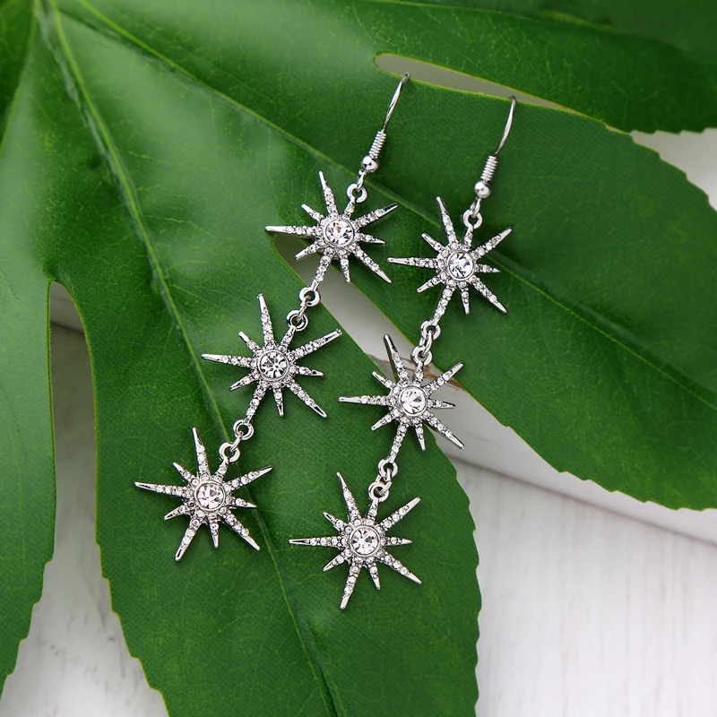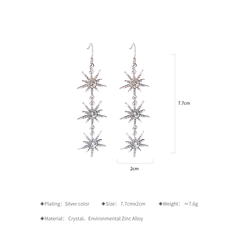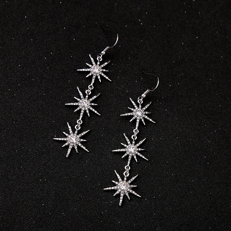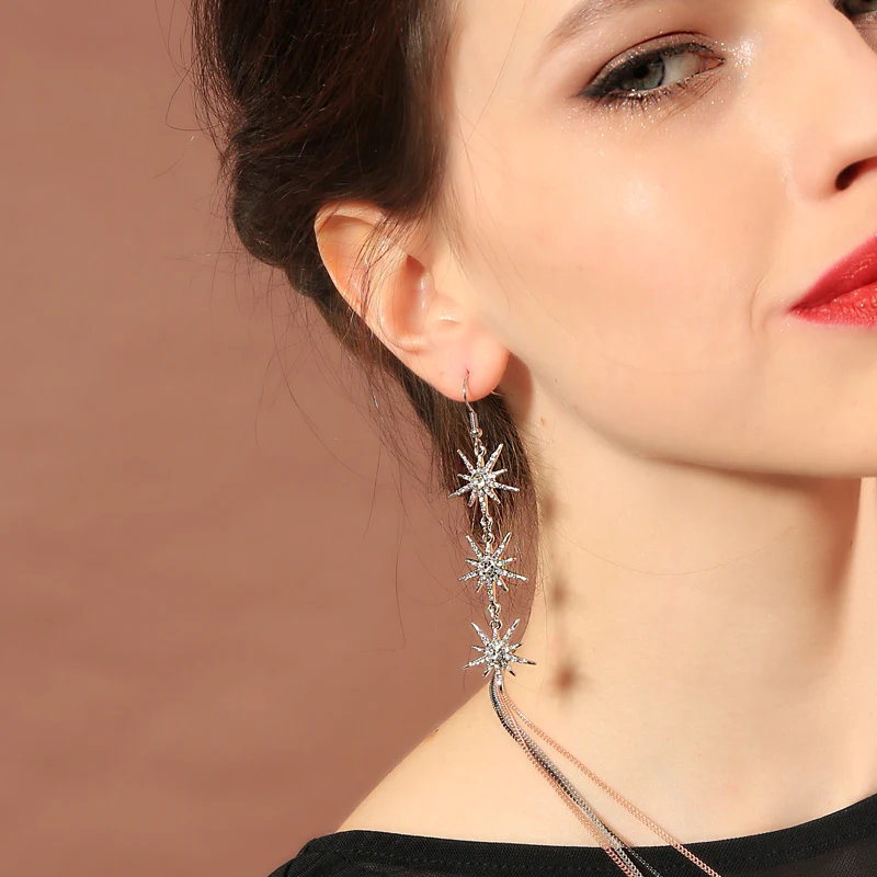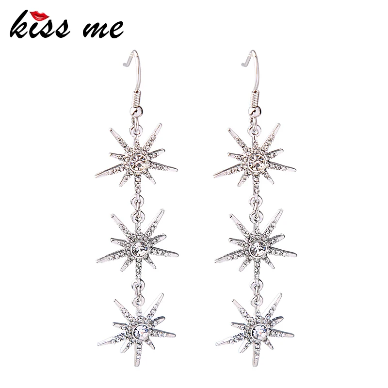 Production name ::KISS ME Clear Crystal Stars Long Drop Earrings