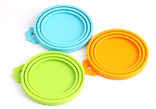 Pet Food Can Cover,Silicone Can Lids for Dog and Cat Food. Material: 100% premium silicone,flexible and durable. BPA free. Size: Universal size,fits for 3 oz,5.5 oz,12 oz dog and cat cans. Washing: Cleaned with water and dry under the shade.Or wash cover on top drawer of the dishwasher to increase the lifespan of the covers. Package Included: 1*Pack of 2 can covers.