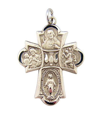 Sterling Silver Four Way Medal Cross with Dove Center, 1 3/16 Inch