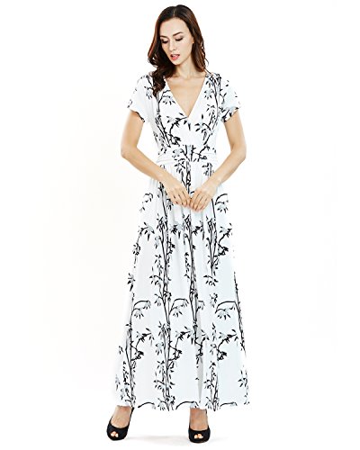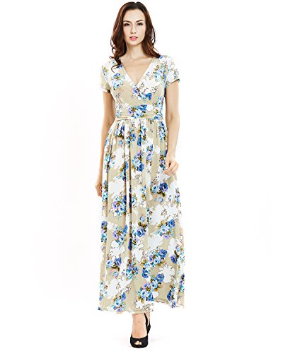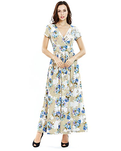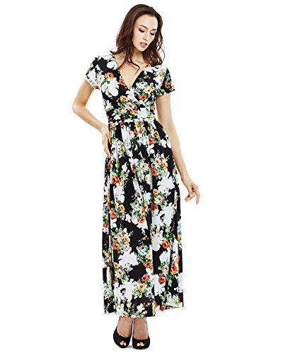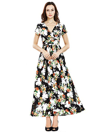 -. Title : OUGES Women's V-Neck Pattern Pocket Maxi Long Dress