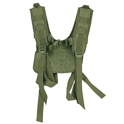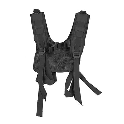 - Contour shoulder harness with three rows of webbing on the back. Compatible with MOLLE/PALS