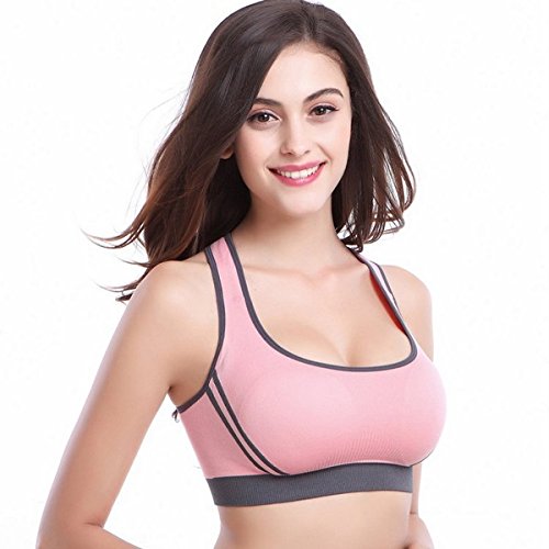 - Feature : This is a tank vest with comfortable touch feeling and sexy style for women gym wear. / Wire free seamless design, wearing won't have bound feeling. / It is designed specially for women who likes jogging, yoga, badminton and so on. / * Item Type: Bras,* Support Tyle: Wire Free,* Bra Style: Seamless,* Material: 96%Nylon + 4%Spandex,* Cup Shape: Full Cup: / Size L Usual Bra Size Conversion : 80A/B/C to 85A/B/C