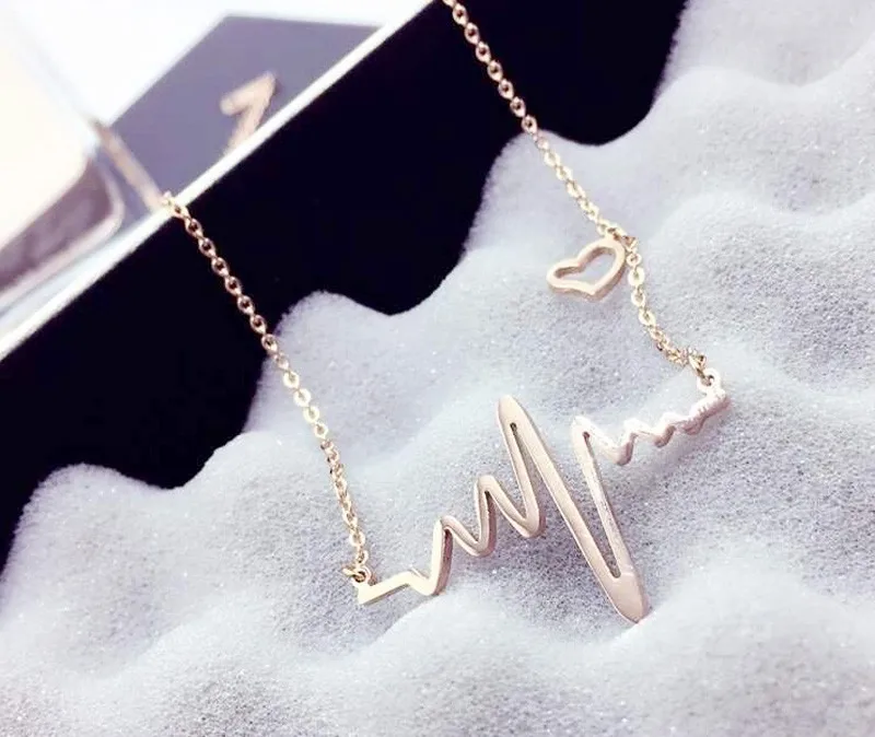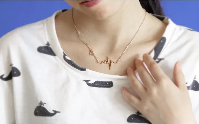 Design:ECG heart chokers Necklace women