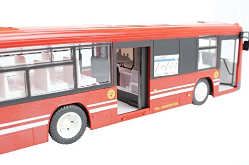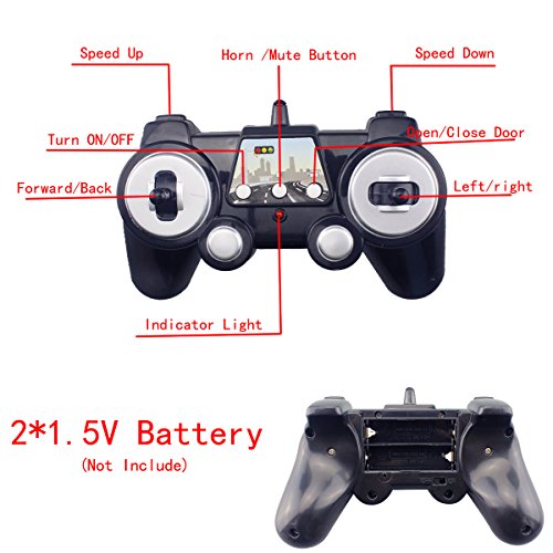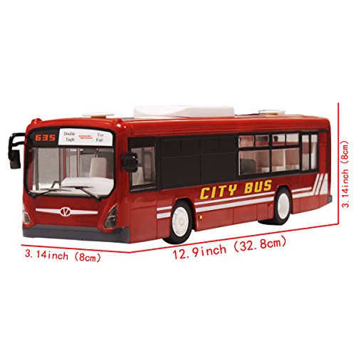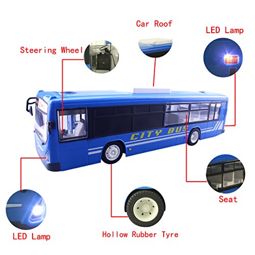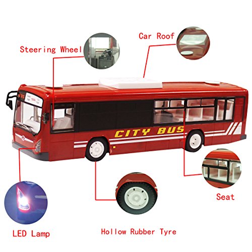 -. Feature : 6 Channel Can Go Forward, Backward, Turn Left, Turn Right, Control Door Open and Close, You Are the Driver / 2.4Ghz High Frequency Pairing, Remote Control Range 10-100M, Support Multiplayer Playing Without Interference / One Key to Open and Close Doors, Real Driving Experience, You Can Imagine The Passengers Get On and Off, Enjoy It and Have Big Fun / High Simulated Sound Effect: Fire, Horns, Accelerate, Reverse Voice etc; Realistic Lighting: Headlights, Taillights, Left and Right Turn Signals. You Will Love It / Superior ABS Material, Bright Color and Innoxious,Clear Windows, Neat Seats, Detailed Design, Rubber Wheels and Sturdy Body