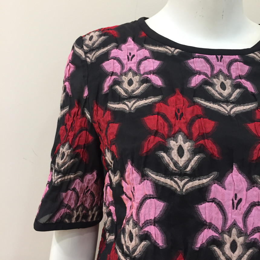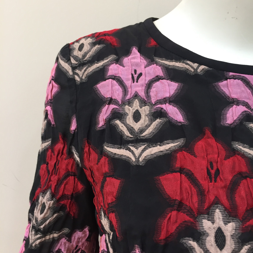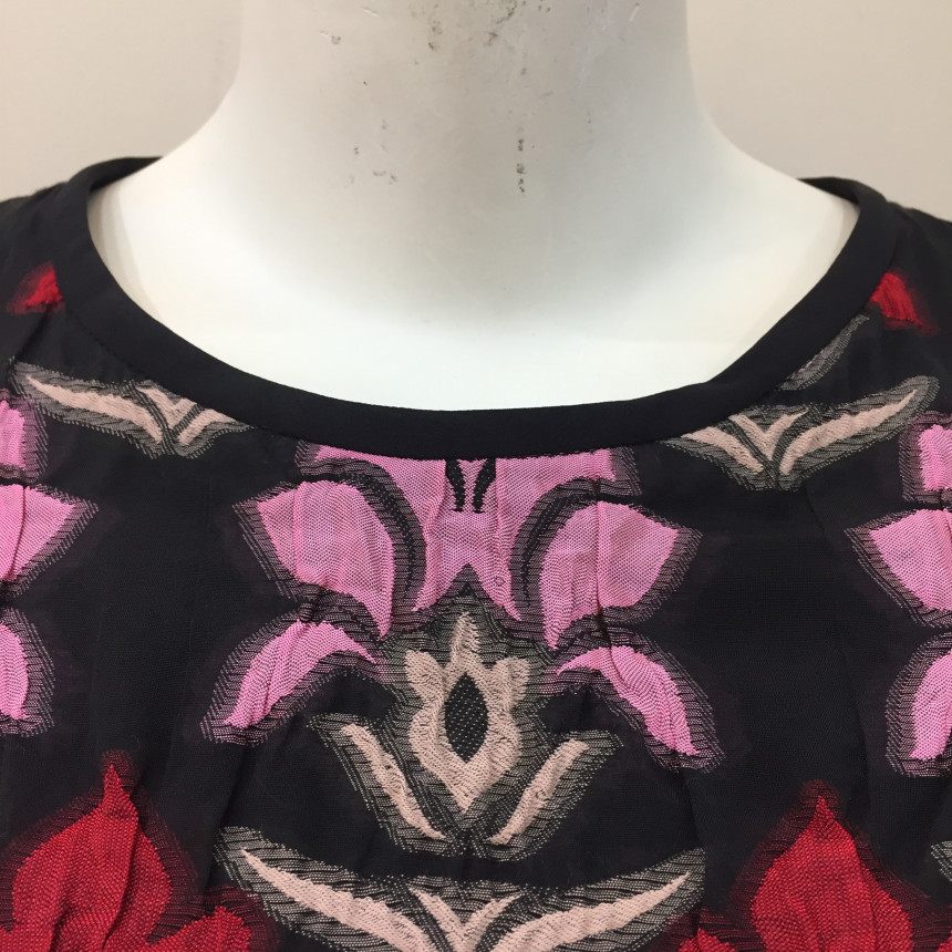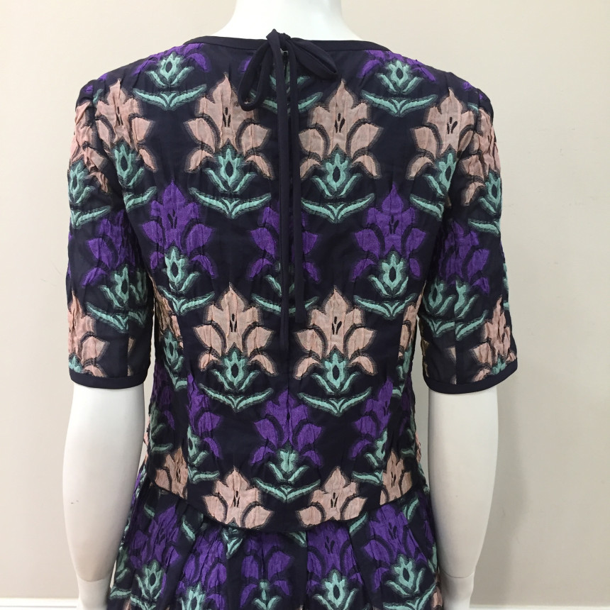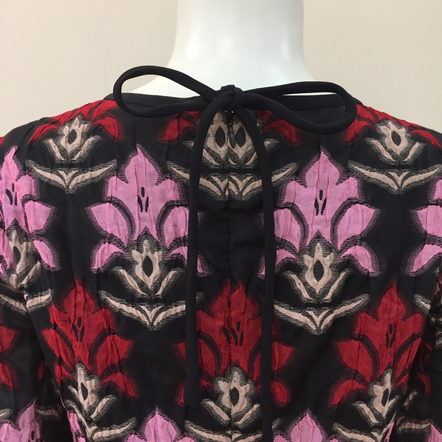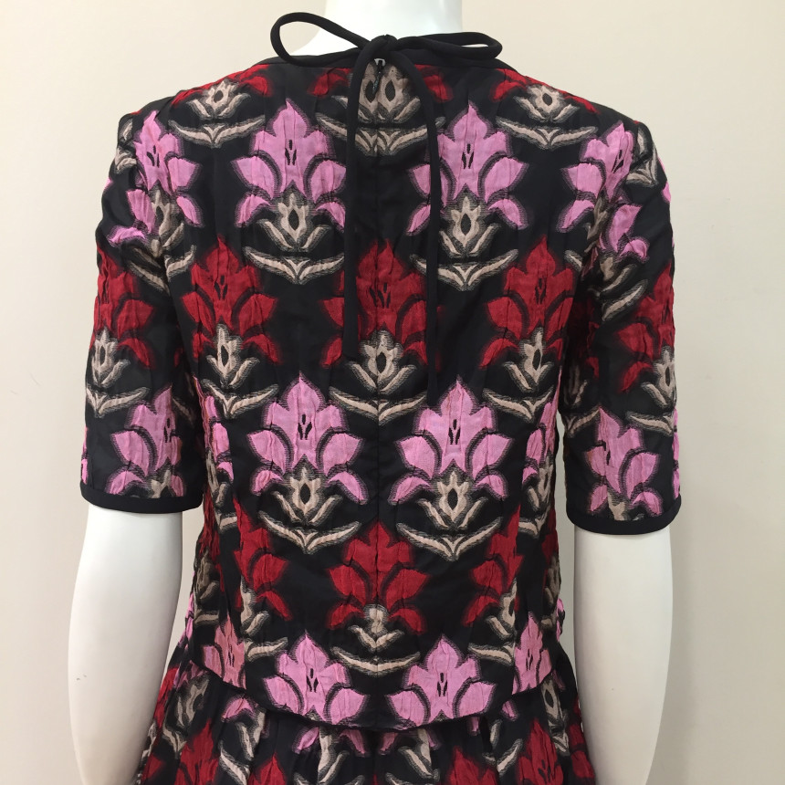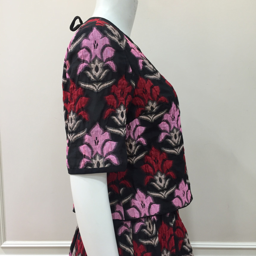 샹들리에 자카드 블라우스 입니다. 기장감이 짧아 스커트에 코디하여 입으시면 좋습니다.샹들이에 자카드 스커트(RSA5772)와 같이 코디하여 입으시면 원피스 착용 느낌으로 연출이 가능합니다.54(55)사이즈 기준 총장 44CM입니다.