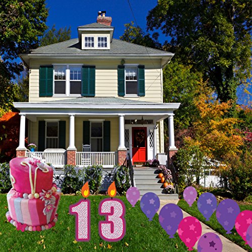 Studio : VictoryStore Publisher : VictoryStore Product Description Each Birthday Girl Decoration is printed in full digital color on outdoor corrugated plastic. Collection of 31 shapes. 2 short stakes for each shape; Each shapes cut from corrugated plastic, not cardboard! Approximate Size: Candle numbers- 6"W x 14"H, Balloons are 8"W x 11.5", cake is 19"W x 26"H . Made from flat plastic, not 3D. 0