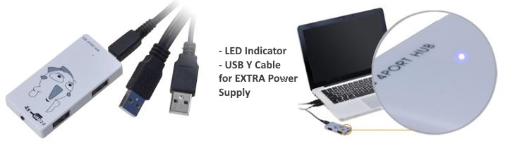 It comes with a USB Y-Cable in case if your USB device draw too much power, you can connect two USB to provide additional power to it.
