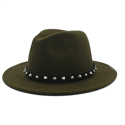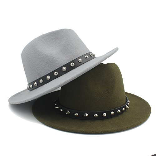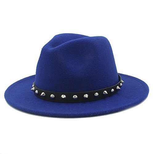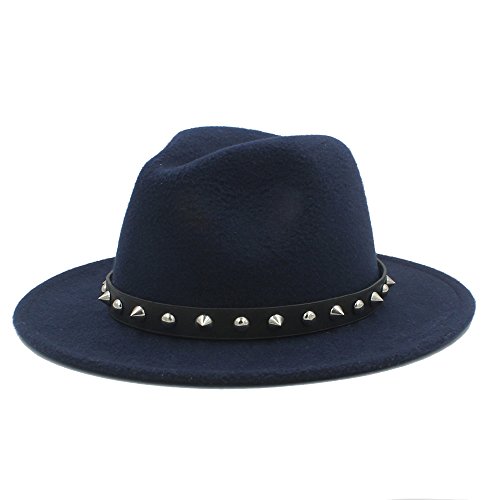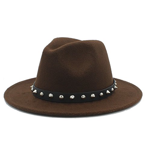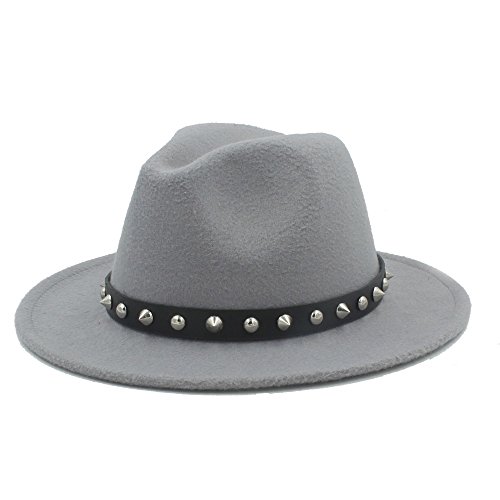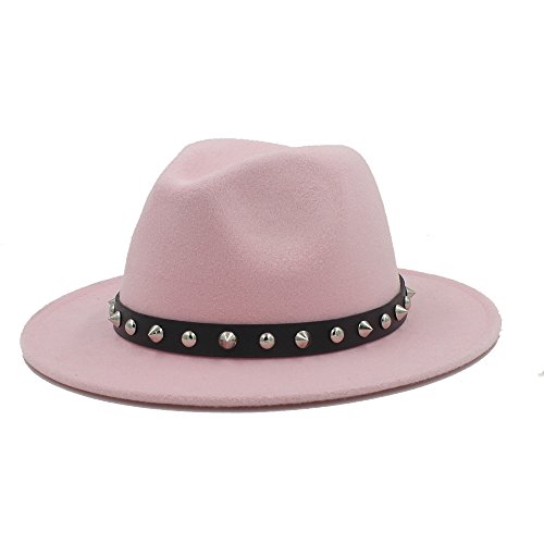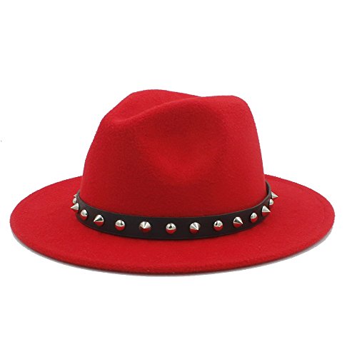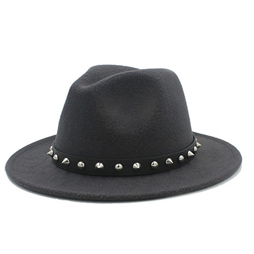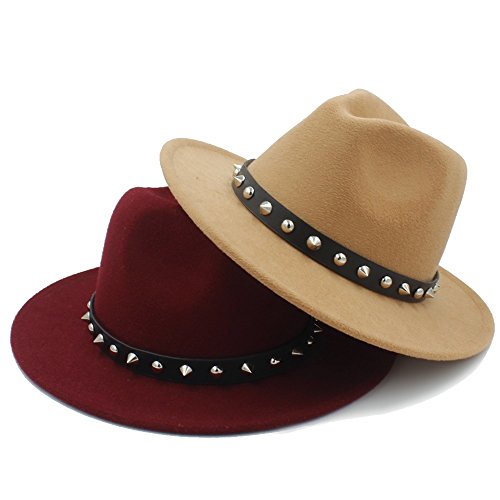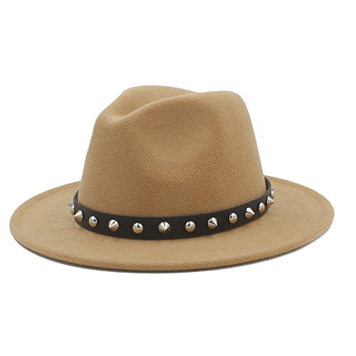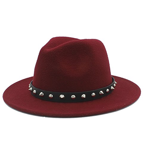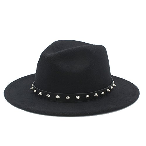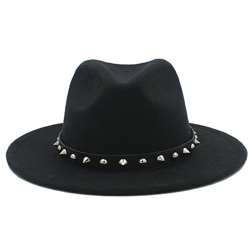 | Ruiyue Fedora Hat With Punk Rivet Ribbon Elegant Lady Dad Autumn Winter Wide Brim |