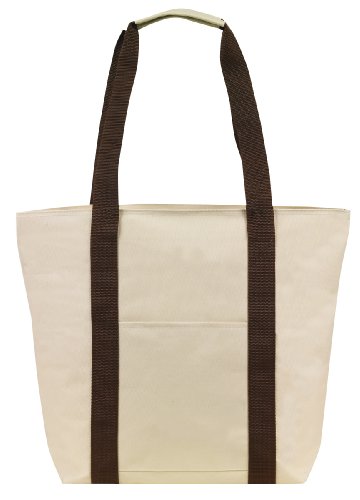 Large Over the Shoulder Tote with Zipper (Natural/Brown)