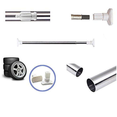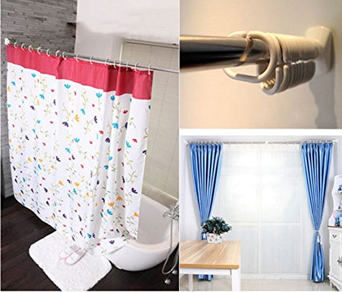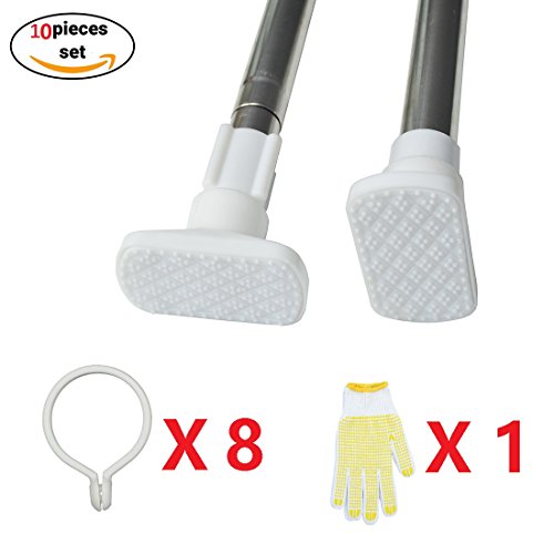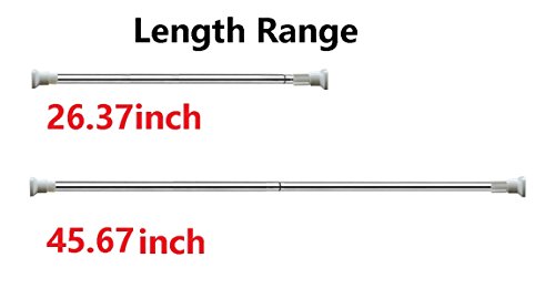 Adjustable Shower Curtain Rods with 8 Free Hanging Hooks Large Size Stainless Steel Windows Curtain Rods with Rubber Mat 26.37"-45.67"