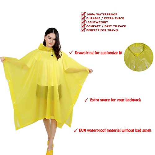 - 100% WATERPROOF MATERIAL:this poncho made of EVA, No any dangerous chemicals!No bad smell!The material is soft,durable and reusable.It's more frugal and environment friendly than disposible poncho.