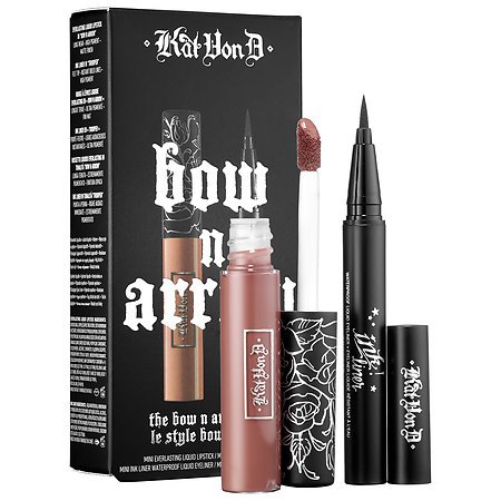 A mini set of Kat Von D's favorite eye and lip products, featuring the famed black Ink Liner and matte, nude Everlasting Liquid Lipstick.