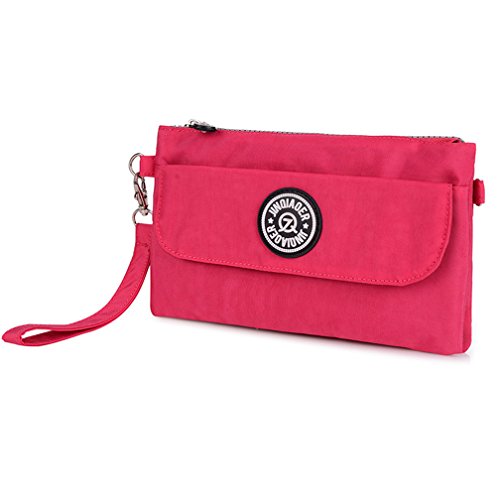TianHengYi Womens Multi-purpose Nylon Wristlet Handbag Clutch Purse Cellphone Bag with Shoulder Strap Rose
